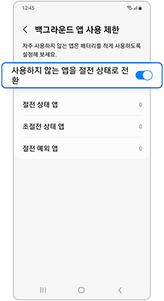 2. 백그라운드에서 실행중인 앱으로 인해 갤럭시 기기가 뜨거워질 수 있습니다. 이 문제를 해결하려면 '백그라운드 사용 제한'을 해보세요.