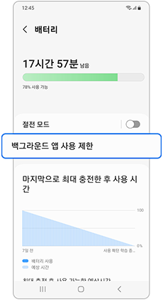 2. 백그라운드에서 실행중인 앱으로 인해 갤럭시 기기가 뜨거워질 수 있습니다. 이 문제를 해결하려면 '백그라운드 사용 제한'을 해보세요.