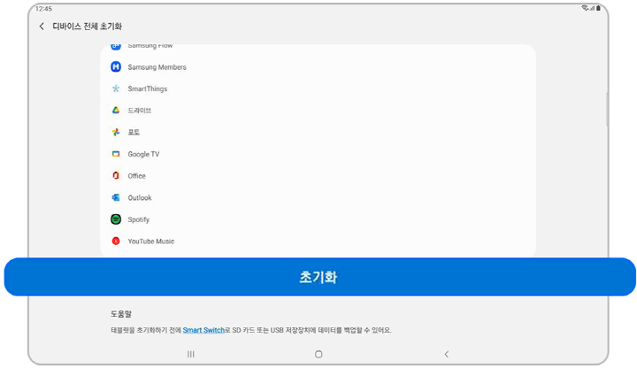 갤럭시 교육용 태블릿 초기화 방법