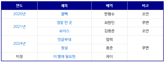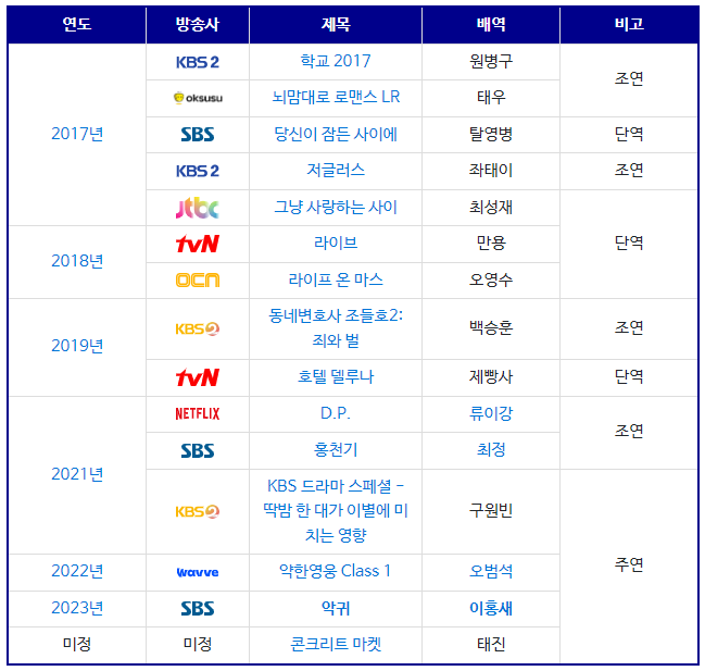 - 데뷔: 2017년 KBS 2TV 드라마 학교 2017
