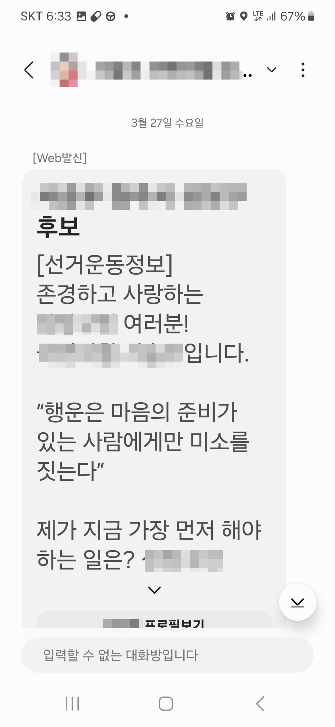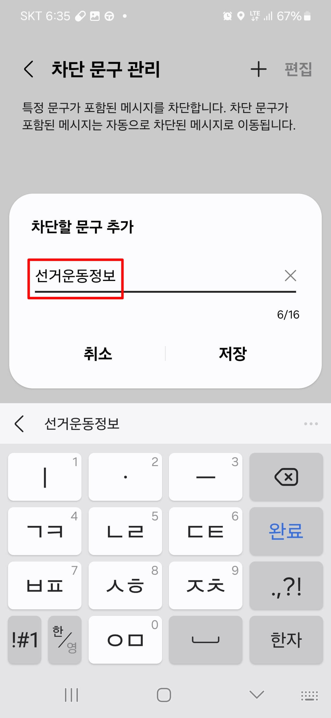 이 방법은 선거 홍보 문자 차단 및 스팸 문자 차단에도 도움이 됩니다.