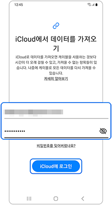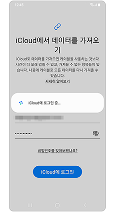 “iCloud에서 데이터 가져오기”를 선택하여 iCloud 계정으로 로그인하면, iCloud 데이터를 가져올 수 있습니다.