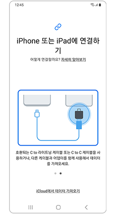 ※ 아이폰에는 스마트 스위치 앱을 설치하지 않습니다. 아이패드의 데이터 이동 방법도 아이폰과 동일합니다.