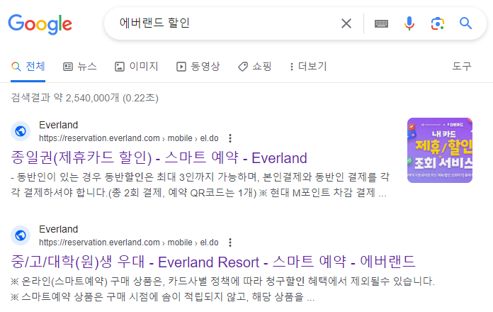 부담되는 금액에 에버랜드 할인 방법을 알아보니 검색 결과가 25만개 정도가 있네요. 너무 많은 정보에 정신이 없는데 할인이 되며 간단한 할인 방법을 찾아보도록 하겠습니다.