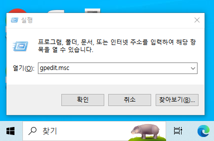 - Windows Key + R을 눌러 실행 창이 나타나면 gpedit.msc 입력하고 확인 버튼을 클릭합니다.