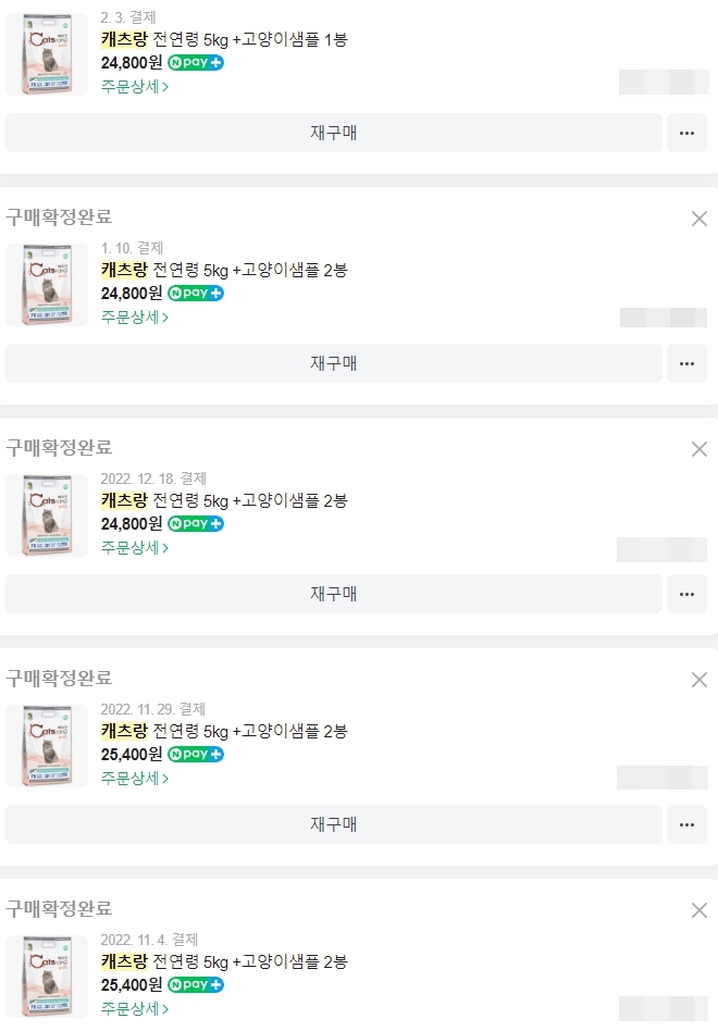 캐츠랑 전연령고양이 5KG 실제 구매내역