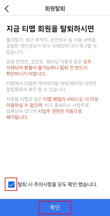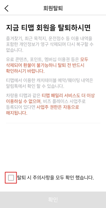 - 초기화를 위해 회원탈퇴를 진행할 때에는 프로필에 등록된 보험사나 본인 차량번호를 삭제해야 할 수 있습니다.