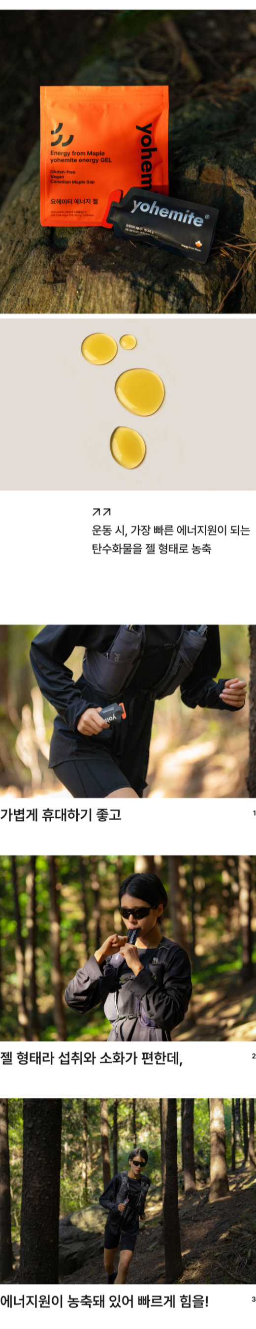 요헤미티 에너지 젤은 운동 중 빠르게 에너지를 보충하고 지속적인 활력을 유지하도록 도와주는 제품입니다.