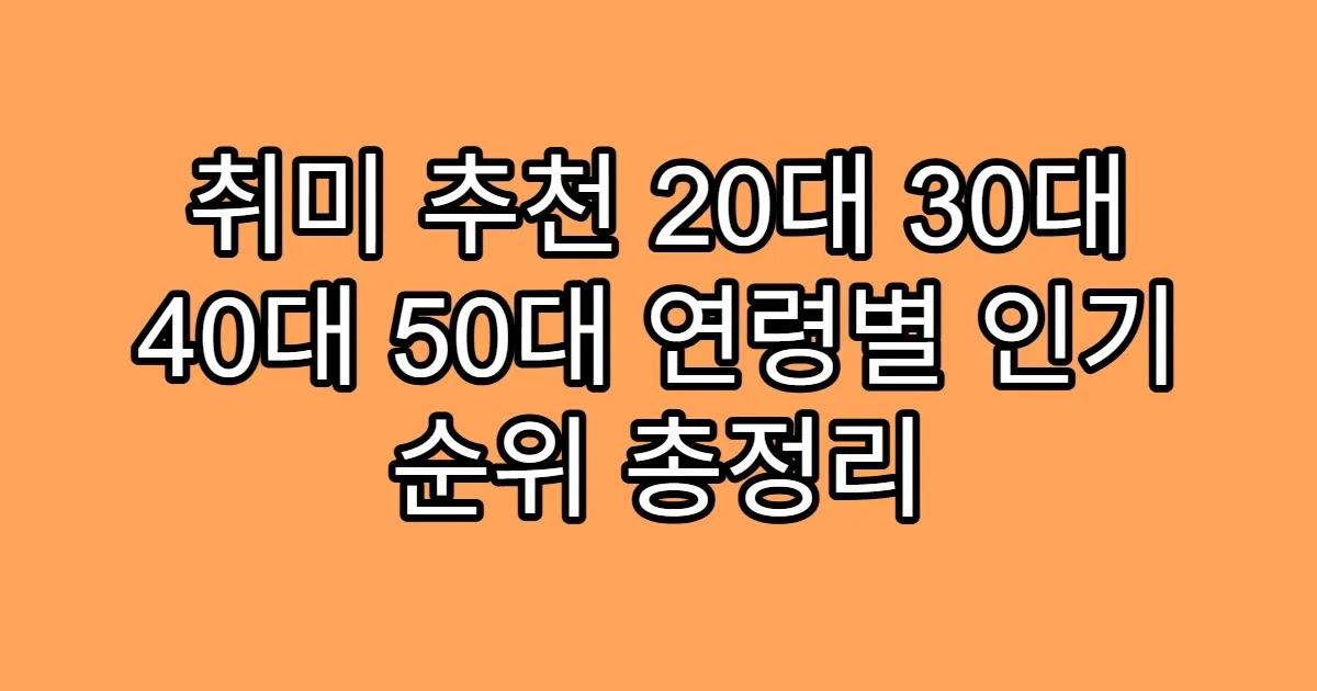 취미 추천 20대 30대 40대 50대 연령별 인기 순위 총정리